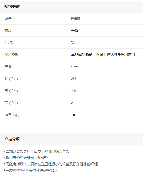 首頁(yè)>產(chǎn)品中心>手部防護(hù)>手套>世達(dá)氬弧焊接手套L